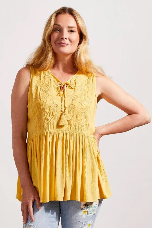 Warm days call for easy-wear pieces and this flowy babydoll top is right on the mark for combining comfort and style. We love the little touches that elevate this blouse beyond the basics—tonal embroidery and a corded neckline with fun tassel trim puts the finishing touches on your new favourite feminine blouse, making it a stylish and effortless addition to any wardrobe.